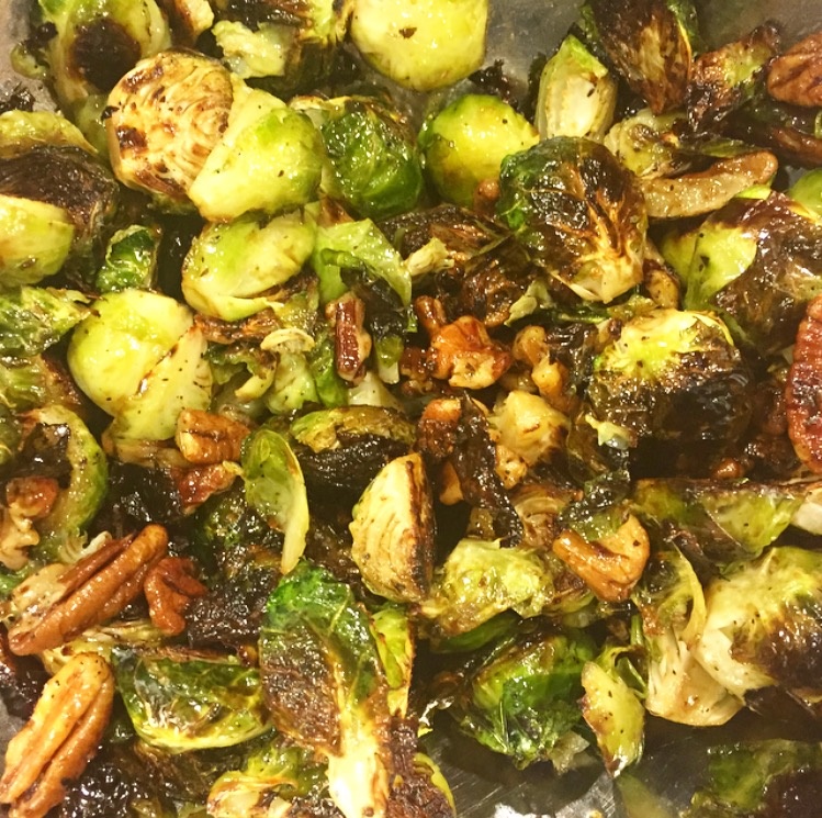 5. Toss the BS back in the bowl adding your balsamic, remaining olive oil, and honey/maple syrup. Add your pecans. Stir.