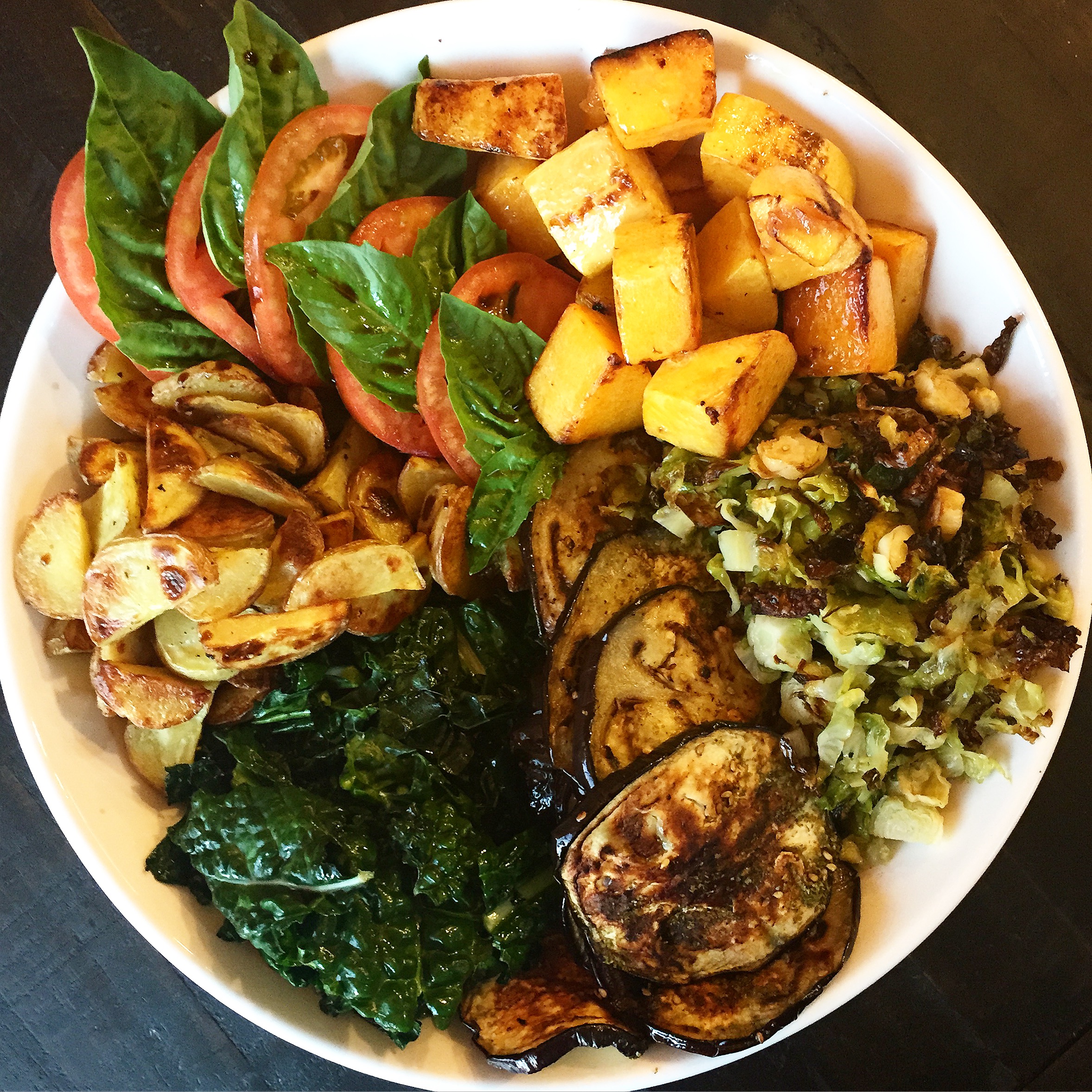 This is not exactly a recipe just more of a little photo inspiration. Last night I noticed I had tons of veggies lying around in all corners of my kitchen. I decided that for dinner I would just have a ROAST FEST and cook em all up. As I was roasting away I started thinking, “how the heck am I going to bring this all together?” And then I remembered the GIANT white bowl I bought and decided to make it a Happiness Bowl. I know right??