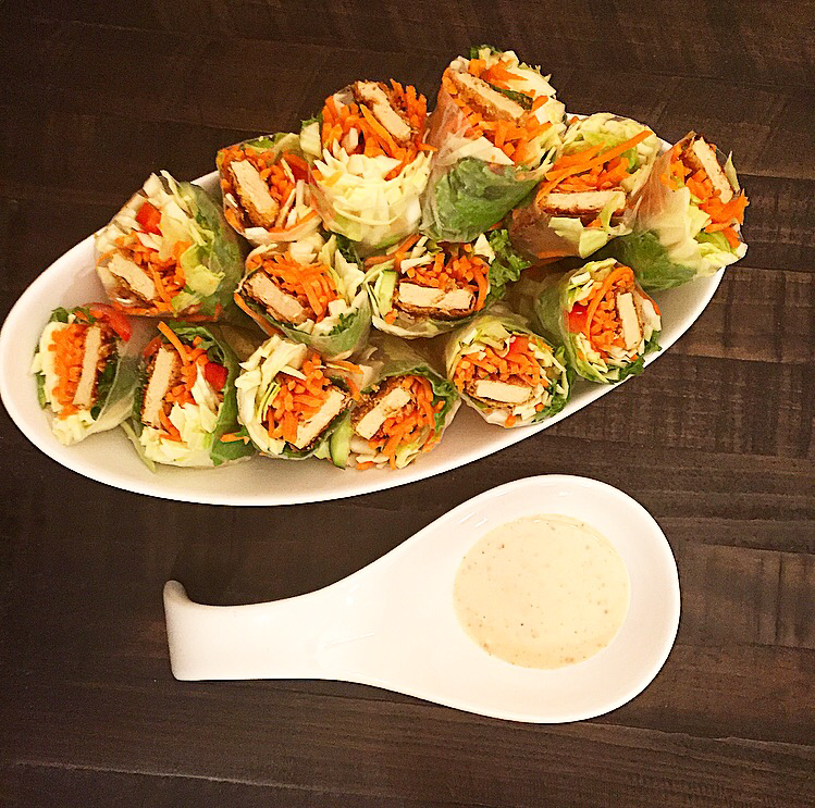 So while the creative juices were flowing the other night I decided to make my favorite dish (veggie spring rolls) and his favorite dish in one Super Power Awesome and Delicious Favorite Dish! Let’s go!