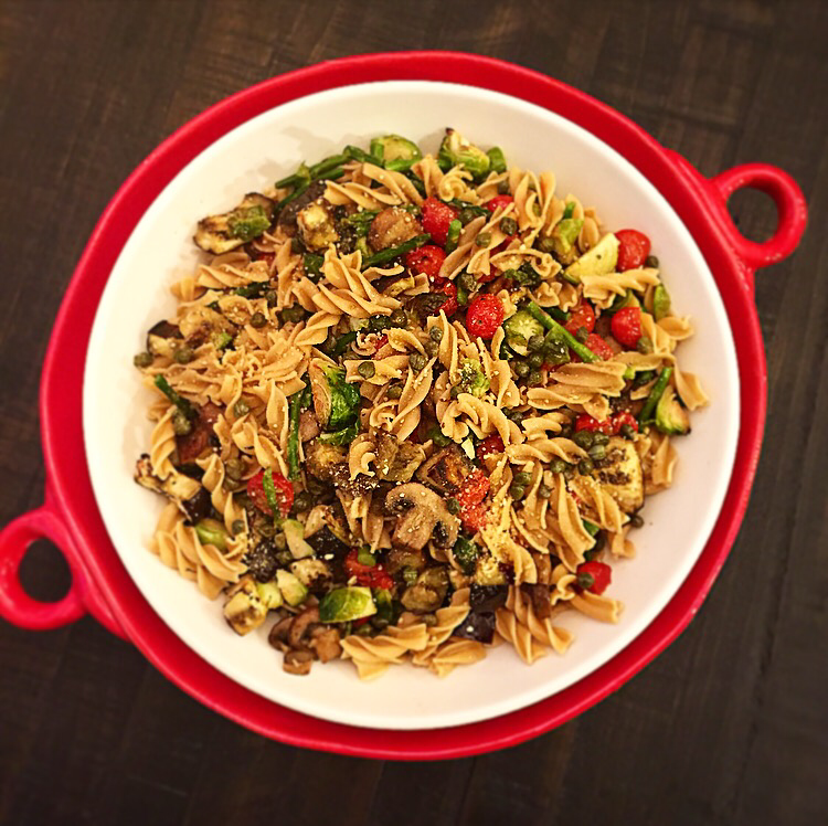 7. Finally, combine everything in a large serving bowl. Sprinkle with some vegan Parmasan cheese and your fried capers. You could also add some fresh basil and red chili pepper for some extra flavor.
