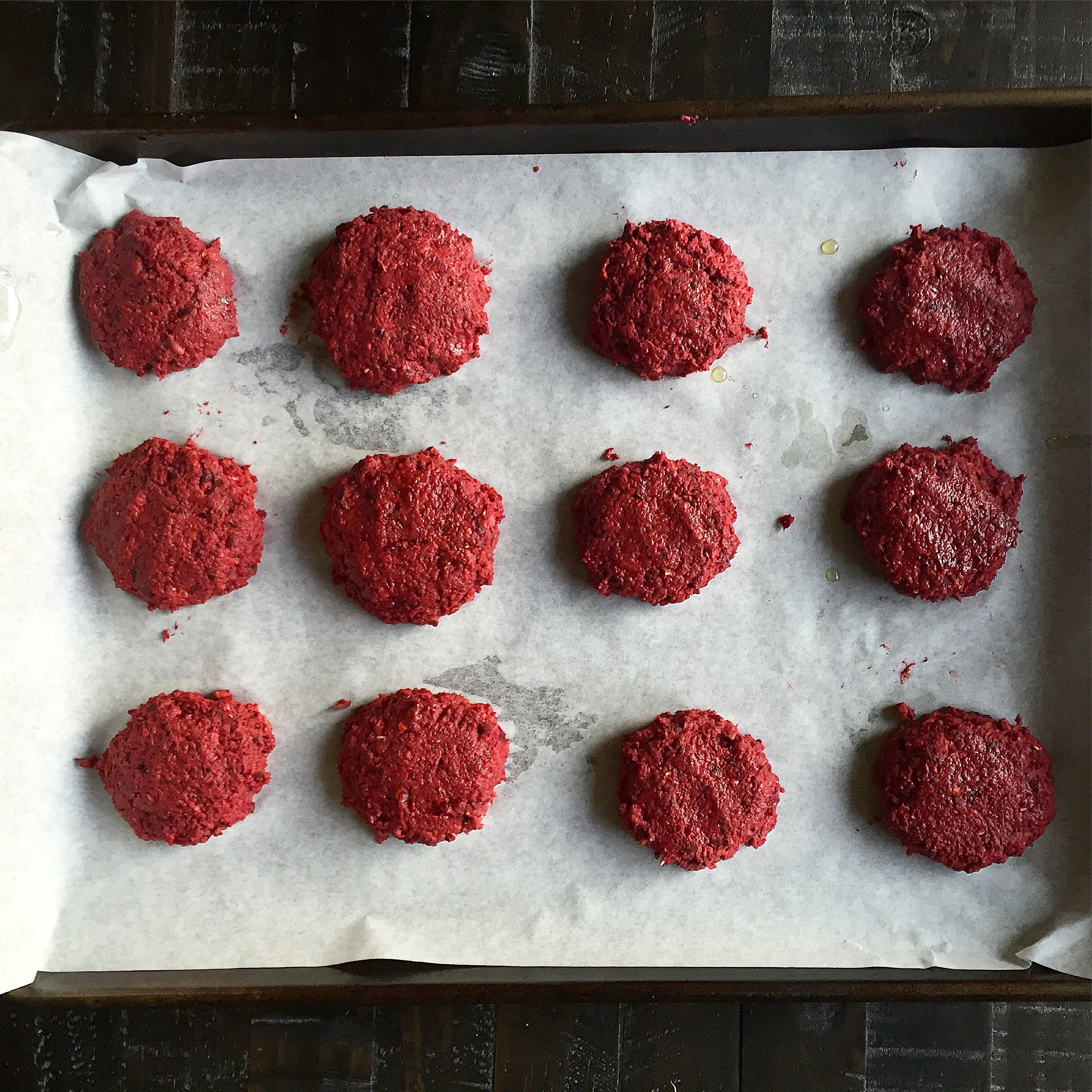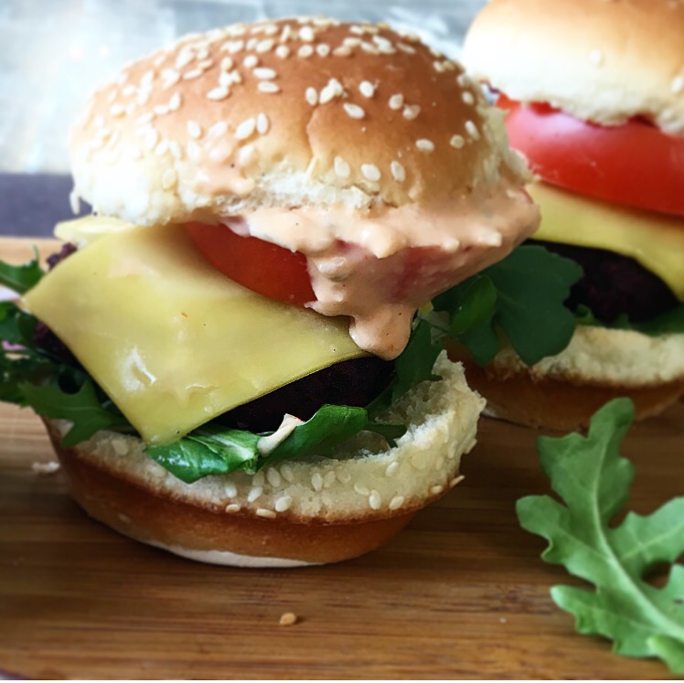 Editor’s Note: Don’t even start with the “I hate beets” bullshit. You can’t even taste the beets and if you’re super picky just sub with carrots, russet potatoes, or sweet potatoes. You won’t get that bloody color but you will still get the yummiest vegan burger!