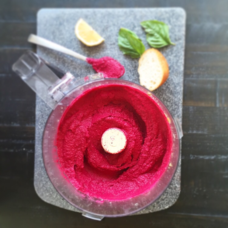 2. Drain & Rinse beans. Add to a food processor with all ingredients except beets. Pulse until smooth. Taste and add more seasonings if needed.
