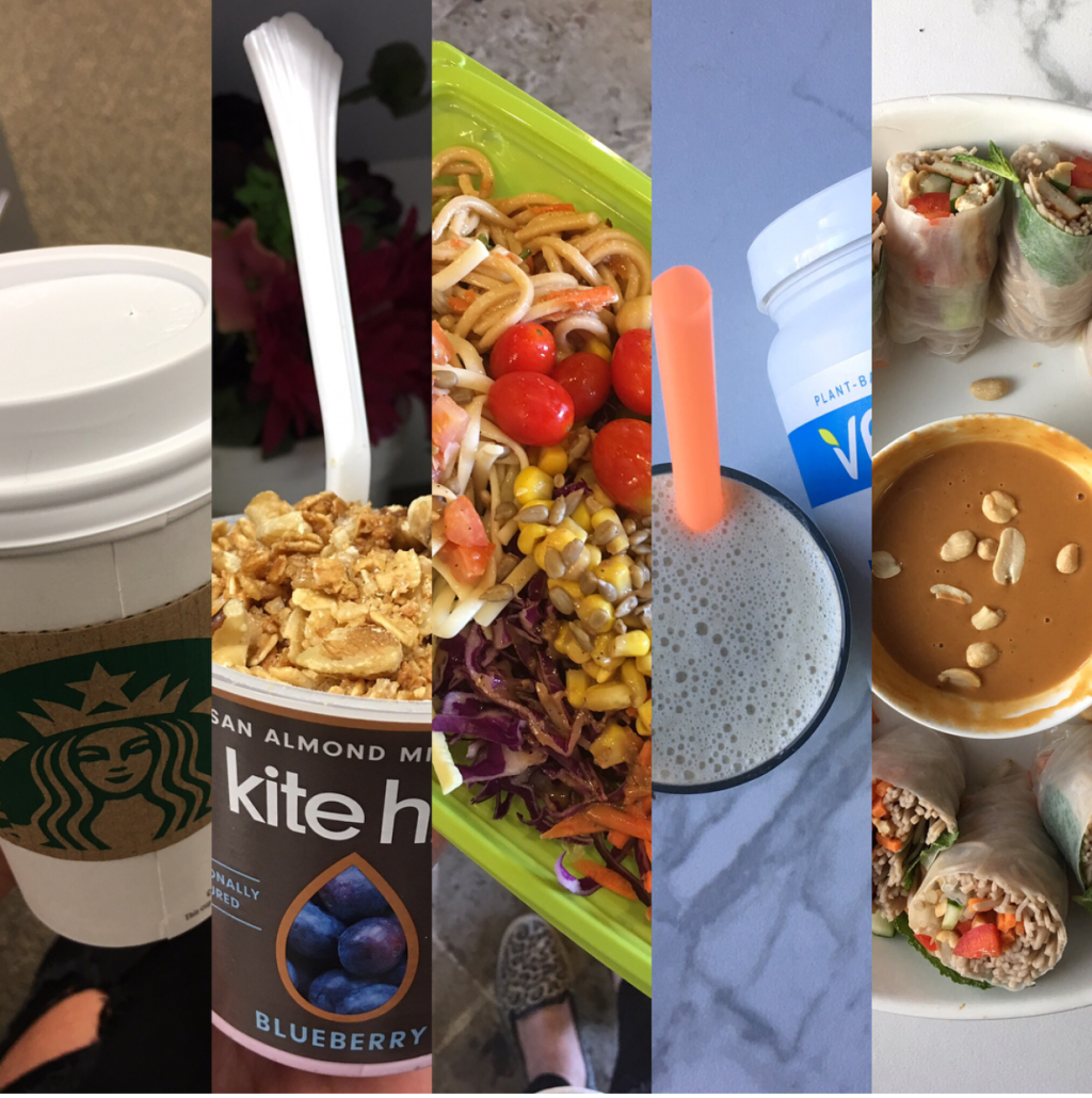 [12:30 PM] It is no secret that lunch is my favorite part of the day. For my typical work days I have been getting extra creative with eating healthy even though I’m surrounded by mostly fast food chain restaurants that are, well not so healthy and definitely not so vegan. My favorite place to go as of lately is Souplantation. It’s a buffet chain restaurant but they let you get a salad bar to go for only $6.99 so I pile on the veggies, vegan noodle salads, beans, seeds, and vinaigrette dressing and enjoy it at my desk. It leaves me full, satisfied, and energized so I’m not aching for a nap after lunch.